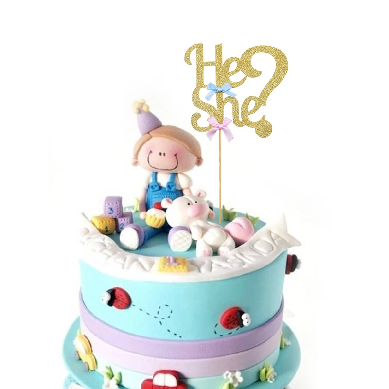 He or she what will it be cake-This gender reveal cake topper will be the perfect way to top of that gorgeous cake Choose one of many pretty colors to suit your party decorations Created using high quality sparkly card stock All cake toppers are attached to foodsafe bHE OR SHE WHAT WILL IT BE?